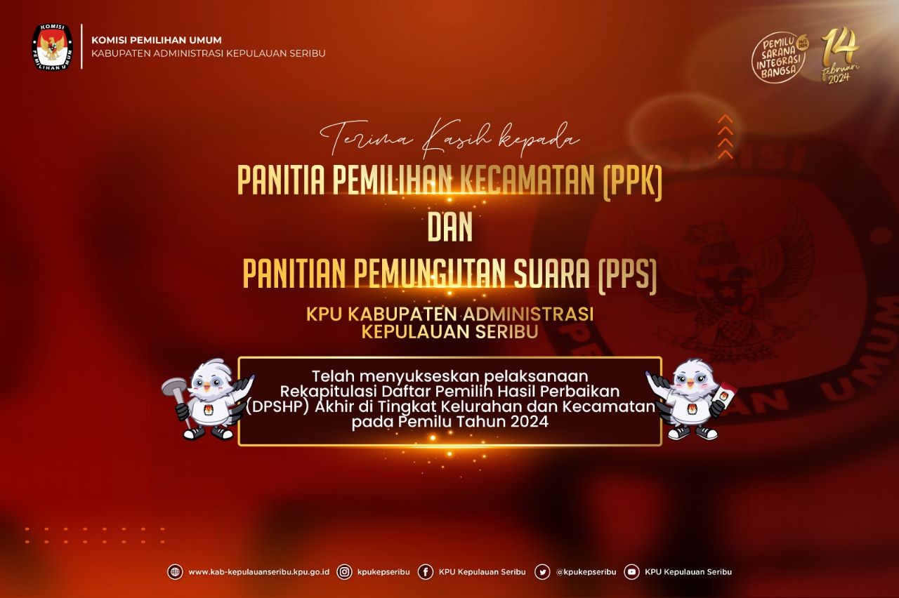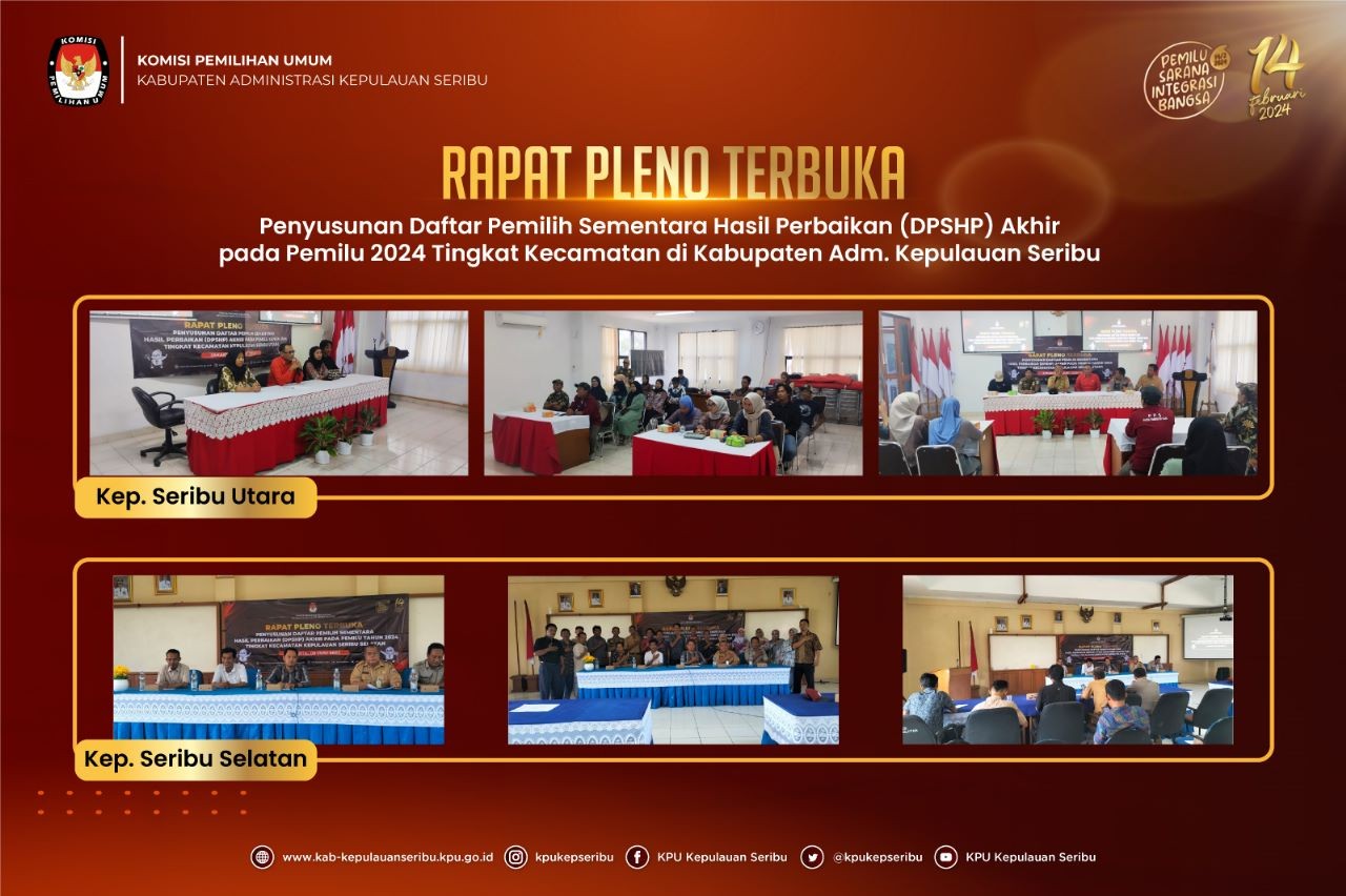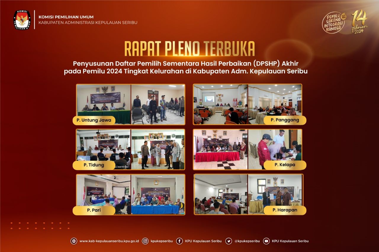 PPS di wilayah Kabupaten Administrasi Kepulauan Seribu telah mengadakan Rapat Pleno Terbuka Penyusunan Daftar Pemilih Sementara Hasil Perbaikan (DPSHP) Akhir Pemilu tahun 2024 di Tingkat Kelurahan.