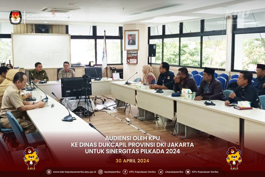 Dalam rangka persiapan Pemilihan Gubernur dan Wakil Gubernur Daerah Khusus Jakarta Tahun 2024, Komisi Pemilihan Umum (KPU) Provinsi DKI Jakarta melakukan audiensi dengan Dinas Dukcapil Provinsi DKI Jakarta di Ruang Rapat Kantor Dinas Dukcapil Provinsi DKI Jakarta pada hari Selasa, (30/04).