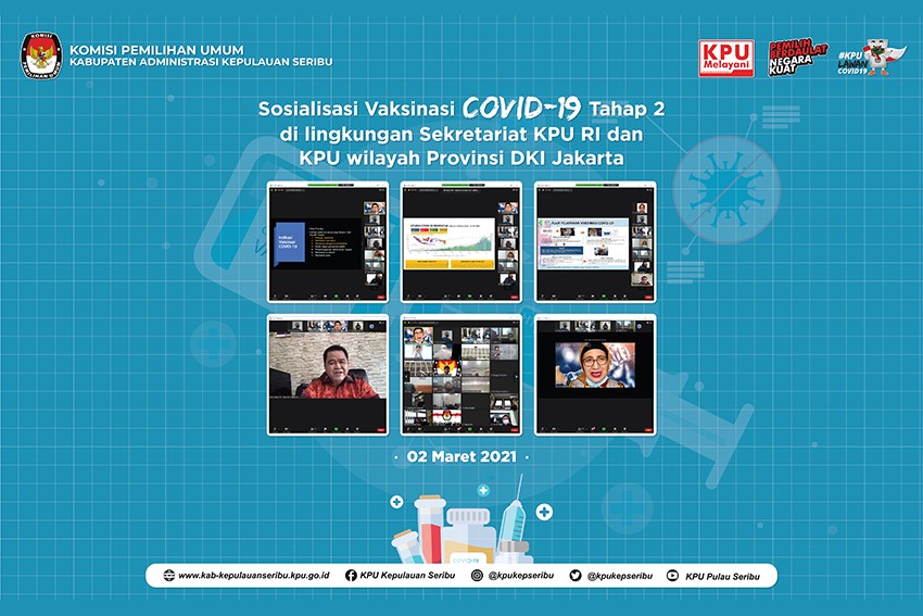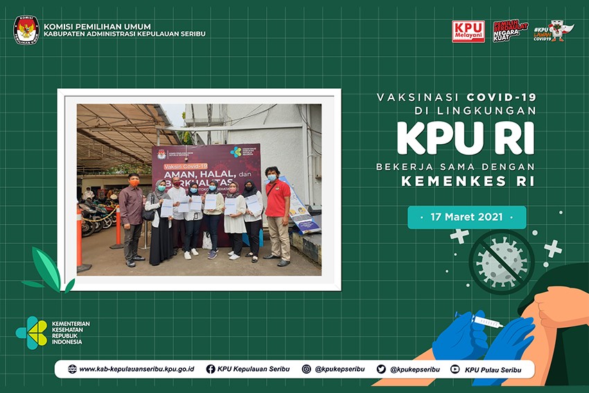 Pelaksanaan Vaksinasi Covid-19 Tahap 1 telah diselenggarakan pada Rabu 17 Maret 2021 di kantor pusat Komisi Pemilihan Umum Republik Indonesia (KPU RI) yang bekerjasama dengan Kementerian Kesehatan (Kemenkes) guna melancarakan program nasional vaksinasi Covid-19 dan berlangsung lancar. Seluruh komisioner dan pegawai di Lingkungan Sekretariat KPU Kabupaten Kepulauan Seribu mengikuti pelaksanaan vaksinasi Covid-19 tahap 1 dengan jadwal yang sudah ditetapkkan pada surat undangan yang diberikan oleh KPU Republik Indonesia yaitu pada pukul 13.00 dengan membawa Kartu Kendali Vaksinasi Covid-19, Kartu Pendaftaran dan Kartu Screening Vaksinasi yang sudah dicetak dan diisi sebagai syarat pendaftaran. Proses vaksinasi berjalan dengan tertib dimulai dari cek suhu pada pintu masuk dan mengambil nomor antrian registrasi, mencuci tangan, menunggu di lokasi yang sudah disediakan lalu setelah nomor antrian registrasi dipanggil oleh petugas maka selanjutnya diarahkan ke meja registrasi dan menyerahkan berkas pendaftaran untuk di-screening data, wawancara dengan petugas medis, melakukan pemberian vaksin di bilik-bilik yang sudah disediakan dan terakhir menunggu di ruang observasi selama 30 menit. Jika terdapat keluhan yang berefek dari pemberian vaksin dapat melaporkan kepada petugas atau dokter yang berjaga di ruang observasi. Setelah proses observasi selesai, berkas pendaftaran diserahkan ke petugas untuk pembuatan kartu vaksinasi Covid-19 dan check out data di meja registrasi. Pada tahap terakhir semua peserta vaksinasi akan mendapat pesan masuk yang dikirimkan pada nomor yang tertera di kartu pendaftaran yang menyatakan bahwa telah mengikuti pelaksanaan vaksinasi Covid-19 tahap 1 serta mendapat sertifikat dan jadwal pelaksanaan vaksinasi Covid-19 tahap 2. Namun, sebanyak 1 komisioner dan 2 pegawai KPU di Lingkungan Sekretariat KPU Kabupaten Kepulauan Seribu belum bisa menerima vaksinasi karena belum 90 hari sejak dinyatakan negatif Covid-19. Ketua KPU Kabupaten Kepulauan Seribu berharap dengan adanya pelaksanaan vaksinasi Covid-19 tahap 1 yang telah diselenggarakan oleh KPU RI bersama Kemenkes dan dilanjutkan dengan tahap 2 mampu menambah imunitas tubuh serta memutus rantai penyebaran Covid-19 di Lingkungan Sekretariat KPU Kabupaten Kepulauan Seribu. Sebagai informasi ada total 1.057 pegawai KPU RI dan KPU DKI Jakarta yang mengikuti vaksinasi. Pada hari pertama ada 549 orang yang terdaftar mengikuti vaksin dan hari kedua sebanyak 508 orang. Dengan pelaksanaan vaksinasi Covid-19, anggota KPU RI Arief Budiman berharap pemberian vaksin membantu tugas KPU dalam menyiapkan tahapan Pemilu dan Pemilihan 2024 karena KPU merupakan salah satu institusi yang dekat dan berinteraksi langsung dengan banyak pihak, KPU beserta orang-orang yang ada didalamnya juga perlu mendapat imunitas dan mencegah menularkan virus ke masyarakat, “Bukan hanya komisioner tapi juga staf kita, kemudian sampai KPU provinsi dan Kab/Kota bisa melakukan hal sama (vaksinasi),” ungkap Arief.