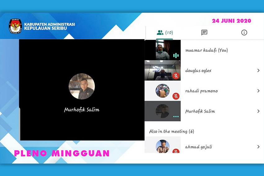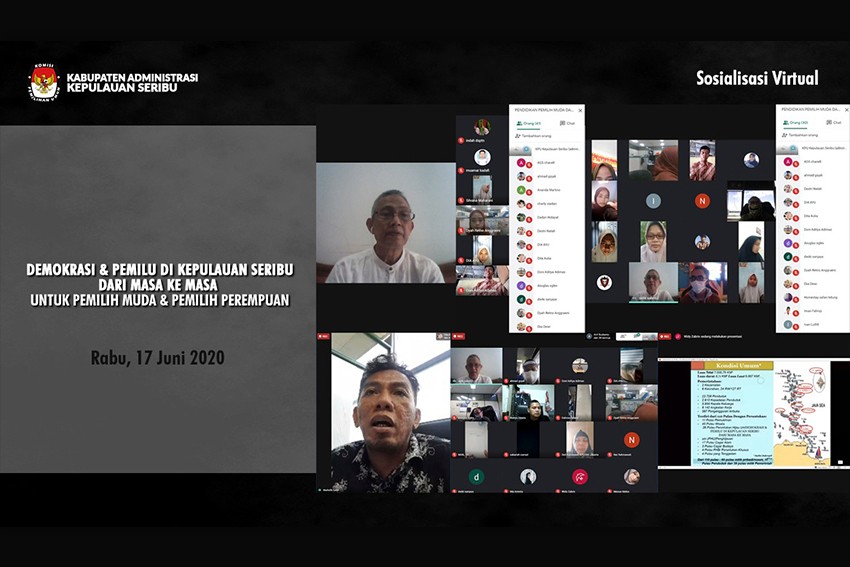Untuk kedua kalinya KPU Kepulauan Seribu menyelenggarakan acara Sosialisasi Pendidikan Pemilih secara virtual. Acara ini dilaksanakan pada hari Rabu 17 Juni 2020 kemarin dengan menargetkan pemilih muda dan perempuan sebagai pesertanya. Beberapa perwakilan yang diundang di antaranya siswa-siswi SMAN 69 Jakarta, SMKN 61 Jakarta, Himpunan Mahasiswa Pulau Seribu, Forum Mahasiswa Kepulauan Seribu, serta mantan Anggota PPK, PPS, dan Relawan Demokrasi.