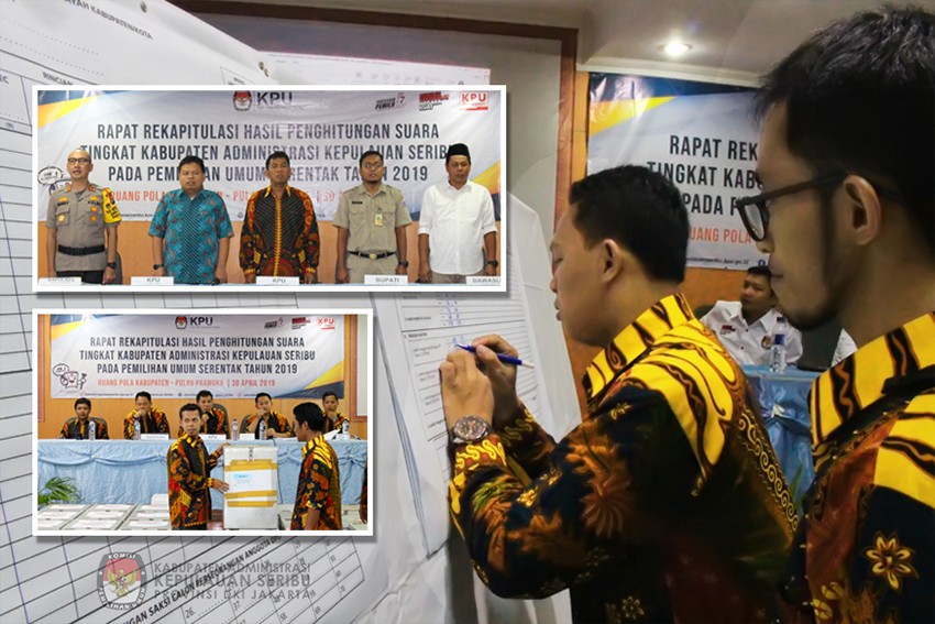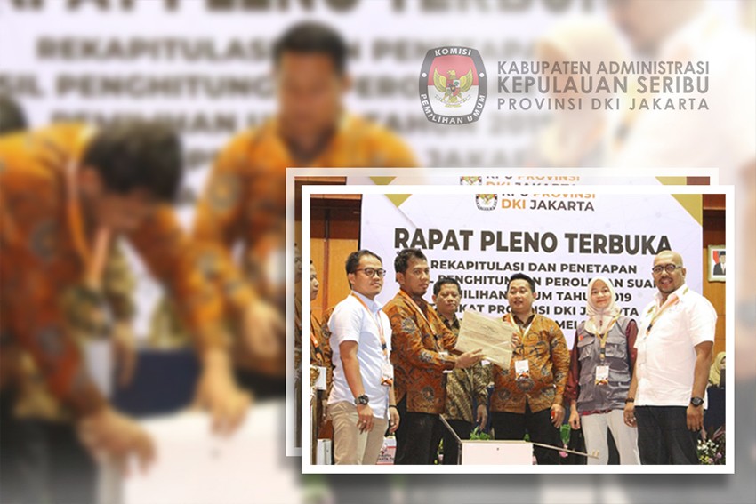 Pada hari Selasa 30 April 2019 KPU Kabupaten Administrasi Kepulauan Seribu melaksanaan Rekapitulasi Penghitungan Suara Pemilihan Umum 2019 di Tingkat Kabupaten Kepulauan Seribu. Acara yang dilaksanakan di Ruang Pola Kantor Bupati Kepulauan Seribu Pulau Pramuka. Sejumlah turut hadir dalam kegiatan tersebut di antaranya, perwakilan Bupati Kepulauan Seribu, Ka. Polres Kepulauan Seribu, Ketua Bawaslu Kepulauan Seribu, Komisioner KPU DKI Jakarta Divisi Teknis, para saksi dari Pasangan Capres dan Cawapres, saksi Parpol, dan saksi DPD, serta PPK dan PPS se-Kepulauan Seribu. Dalam agenda rapat pleno tersebut Komisioner KPU Kepulauan Seribu secara bergantian membacakan perolehan suara di masing-masing Kecamatan. Diawali dengan Kecamatan Kepulauan Seribu Selatan kemudian dilanjutkan dengan Kecamatan Kepulauan Seribu Utara. Secara berurutan perolehan suara yang dibacakan yaitu PPWP, DPR, DPD, dan DPRD Provinsi. Tidak ada hambatan yang berarti selama proses penghitungan suara, seluruh pihak yang hadir sepakat untuk menerima hasil penghitungan suara dan bersedia membubuhkan tanda tangannya baik di form DB1 Plano maupun DB1 salinan untuk kemudian dibagikan kepada yang berkepentingan saat itu juga. Berikut hasil perolehan suara di tingkat Kabupaten Kepulauan Seribu: Pemilu Presiden dan Wakil Presiden: 1. Joko Widodo & Ma’ruf Amin: 8.826 2. Prabowo Subianto & Sandiaga Unno: 8.281
