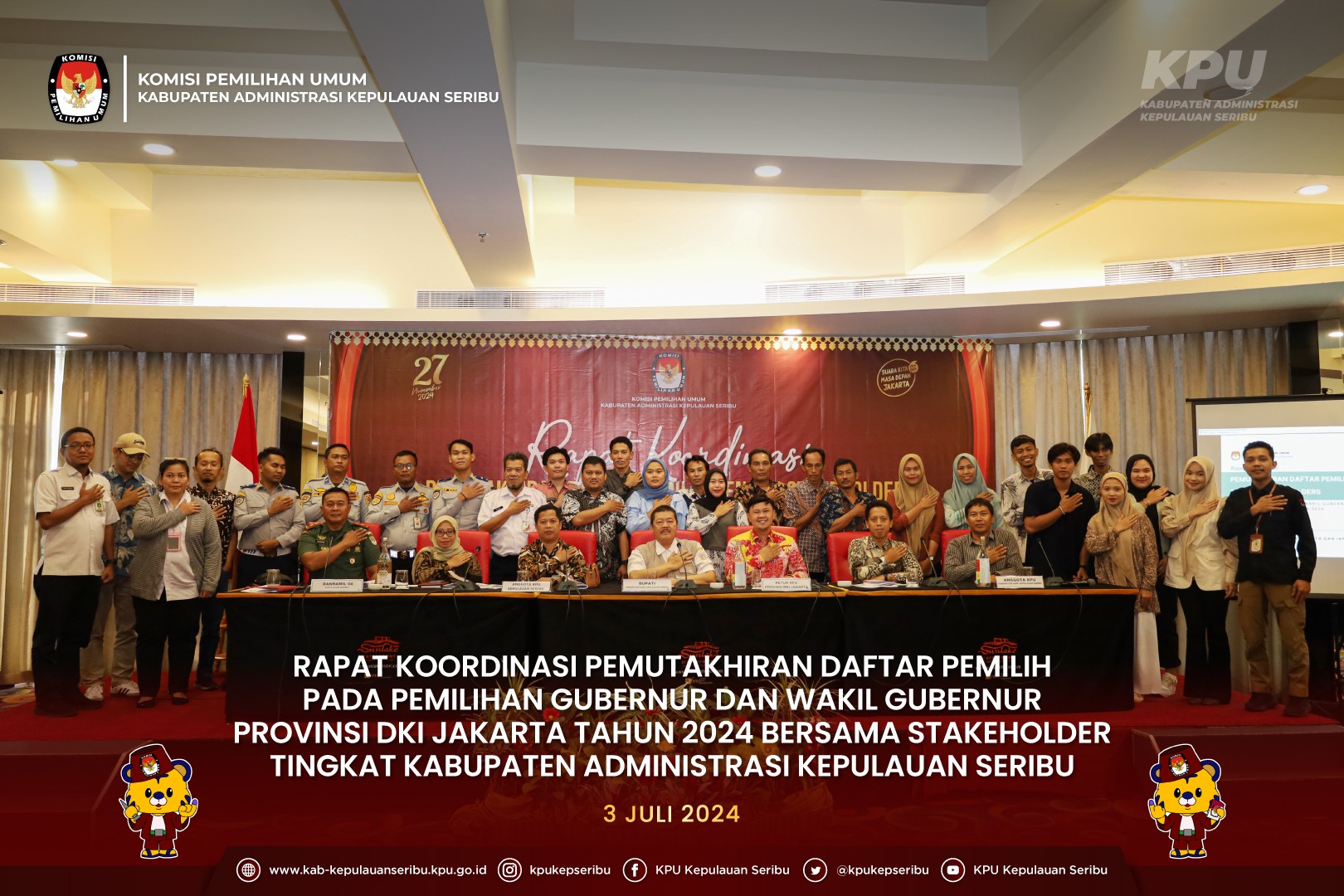 #TemanPemilih, KPU Kabupaten Adm. Kepulauan Seribu menggelar Rapat Koordinasi Pemutakhiran Daftar Pemilih pada Pemilihan Gubernur dan Wakil Gubernur Provinsi DKI Jakarta Tahun 2024 di Sunlake Hotel, Rabu (3/7/2024)
