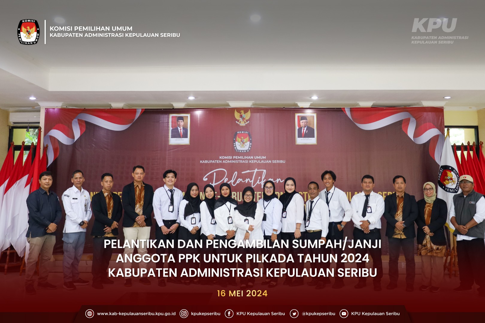 Anggota PPK dilantik langsung oleh Ketua KPU Kabupaten Adm. Kepulauan Seribu, Iman Cahyadi, disaksikan Bupati Kepulauan Seribu, Junaedi dan sejumlah tamu undangan lainnya. Dalam proses pelantikan, dilakukan juga pengambilan sumpah/janji, serta penandatanganan pakta integritas sebagai bentuk komitmen anggota PPK.
