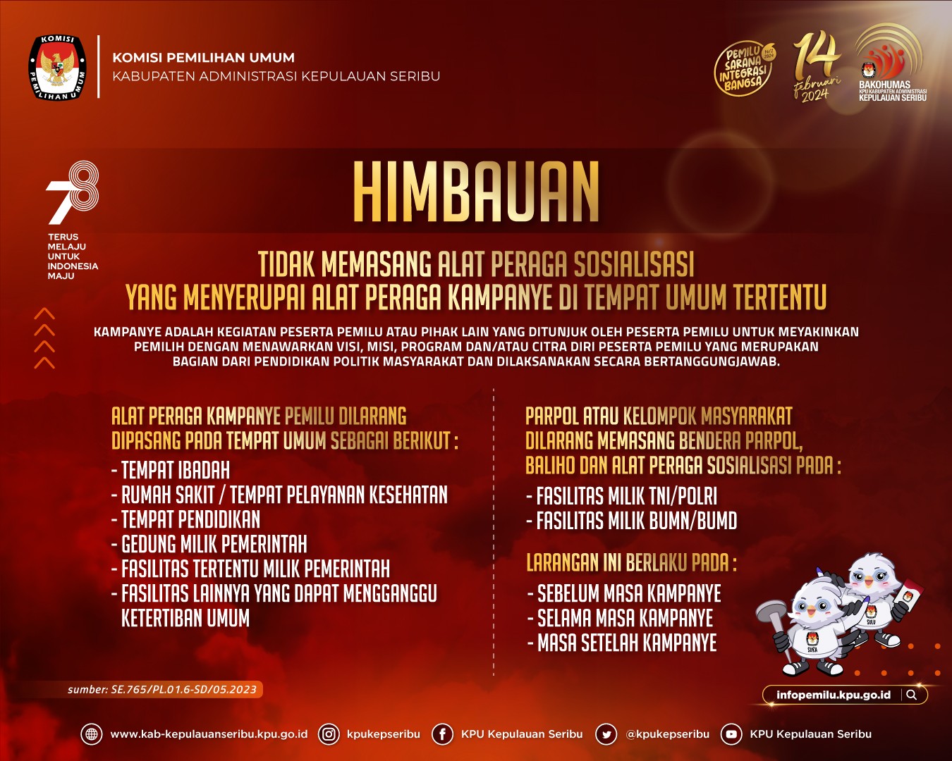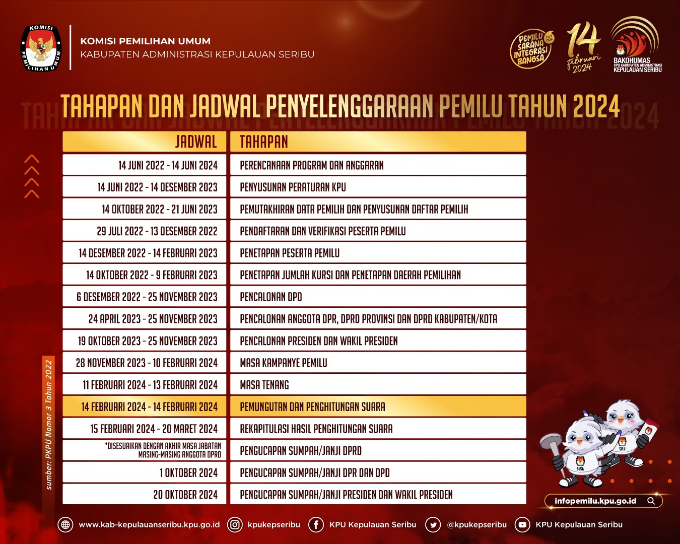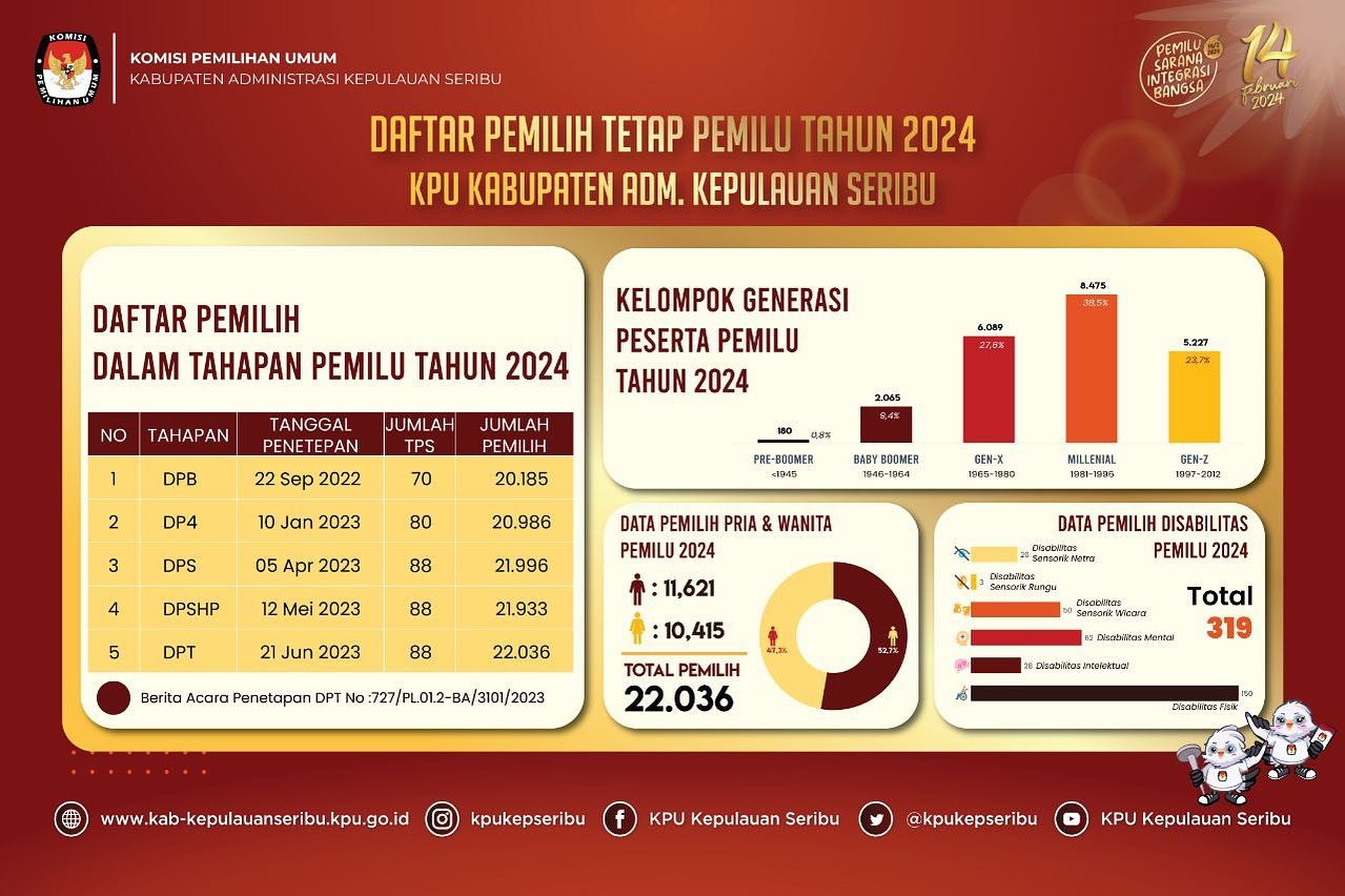 KPU Kepulauan Seribu telah menetapkan Daftar Pemilih Tetap Pemilu Tahun 2024 di Wilayah Kepulauan Seribu dengan rincian, sebagai berikut: