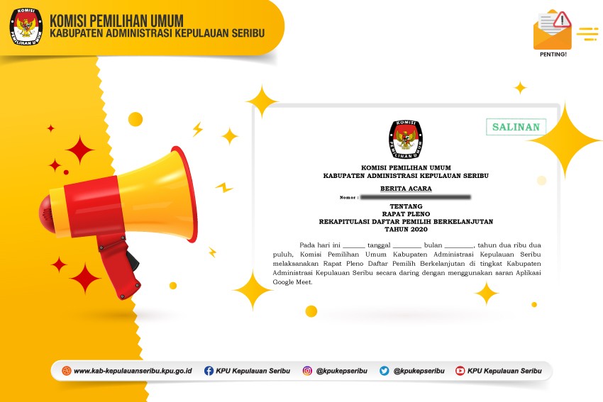 Berita Acara Pemutakhiran Daftar Pemilih Berkelanjutan Tahun 2020 Bulan Desember Kamis, 14 Januari 2021 00:00 109 Berita Acara Pemutakhiran Daftar Pemilih Berkelanjutan Tahun 2020 Bulan Desember. Unduh File Baca Selengkapnya